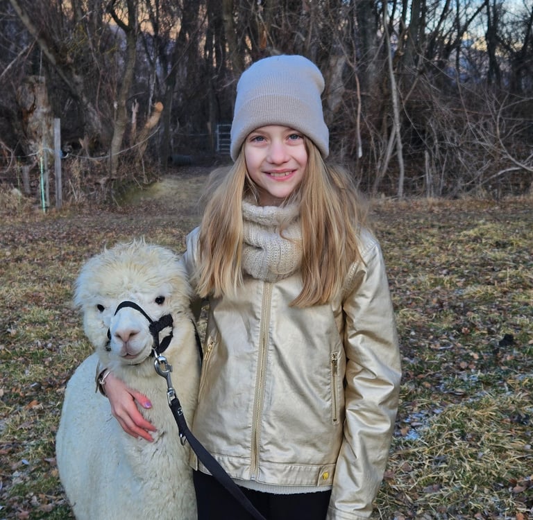 Mit ihr läuft jeder Alpaka-Spaziergang wie am Schnürchen. Ruhig, souverän und immer mit einem Lächeln unterwegs. Weiss genau, wann wir laufen wollen - und wann wir einfach nur stehen und schauen.
